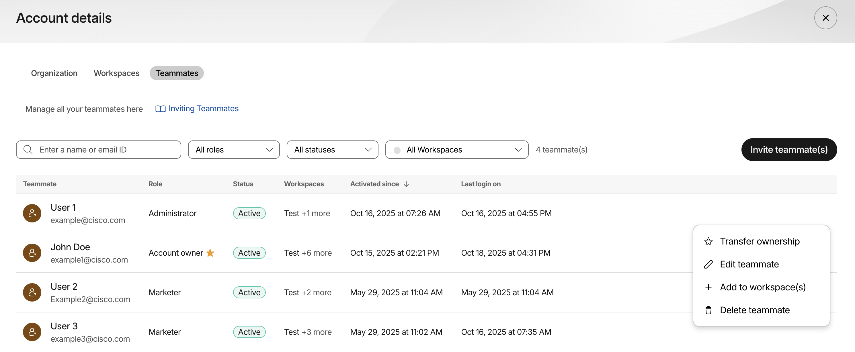 Invite and manage teammates in workspaces