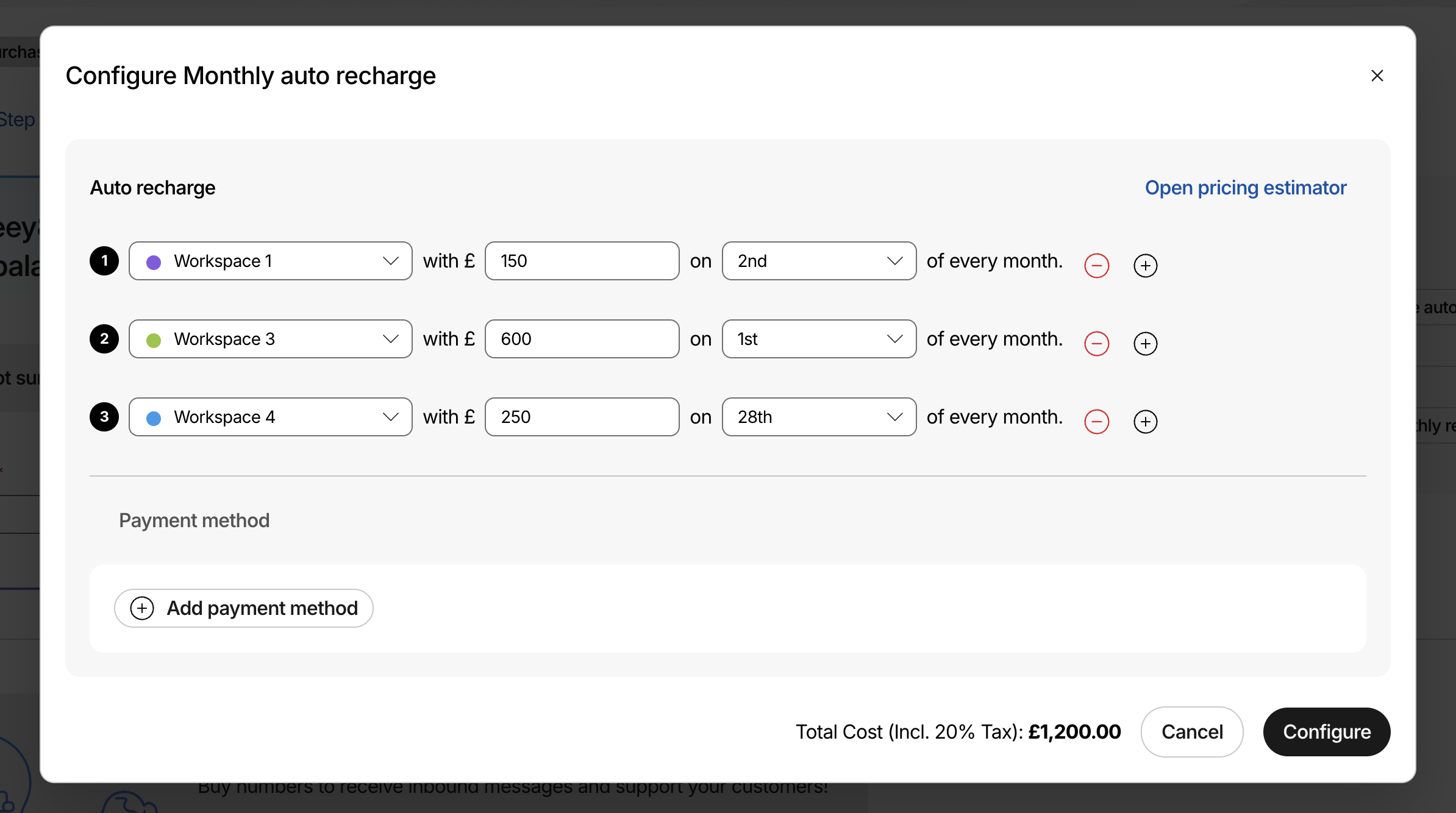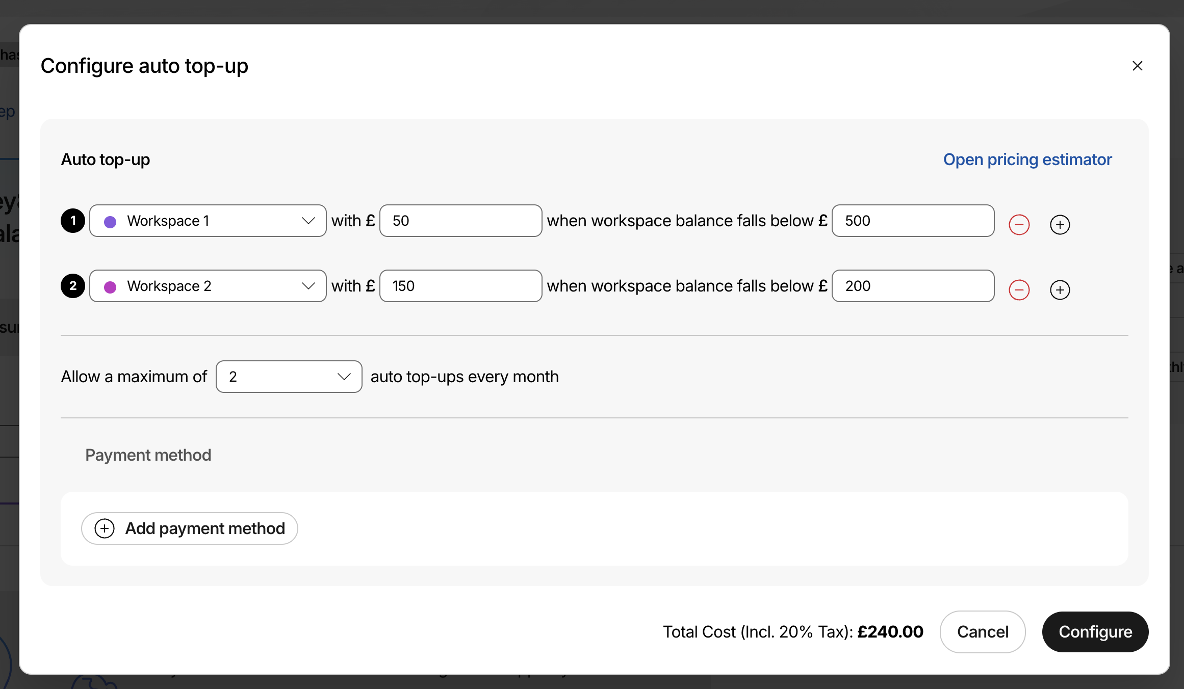 Automatic payments on workspaces
