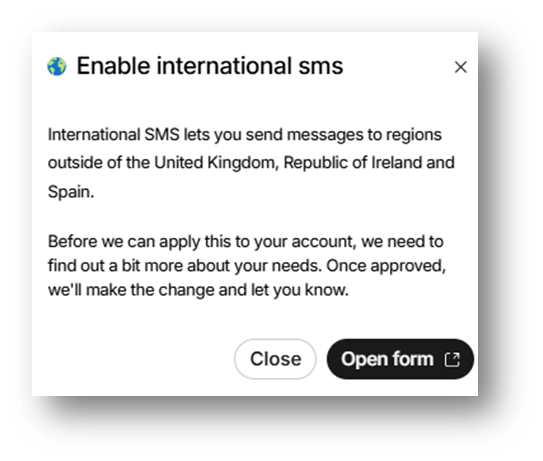 - Check supported countries - ensure the countries you wish to message are supported and enable International SMS for any unsupported countries.